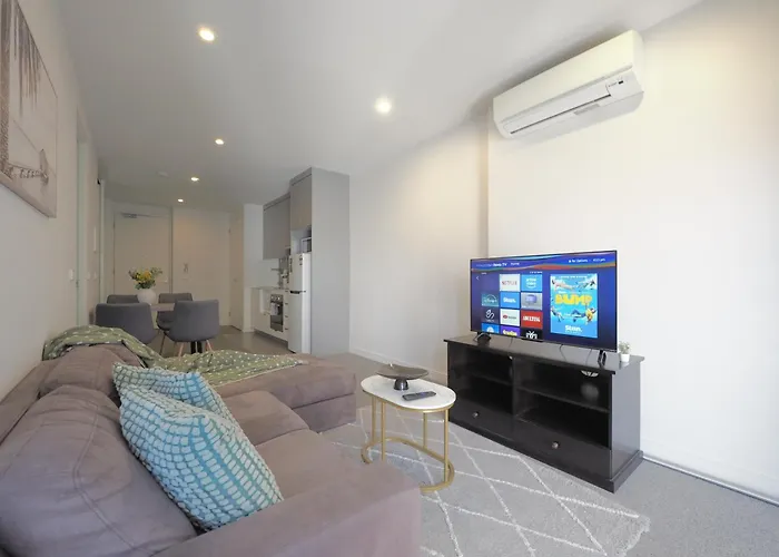 料理をしたい方のために、この寝室1室のアパートは自家製の食事を用意できる設備の整った台所を用意しています。 A'Beckett Street/Queen Streetバス停はこの宿泊から150メートルの距離の場所にあります。
